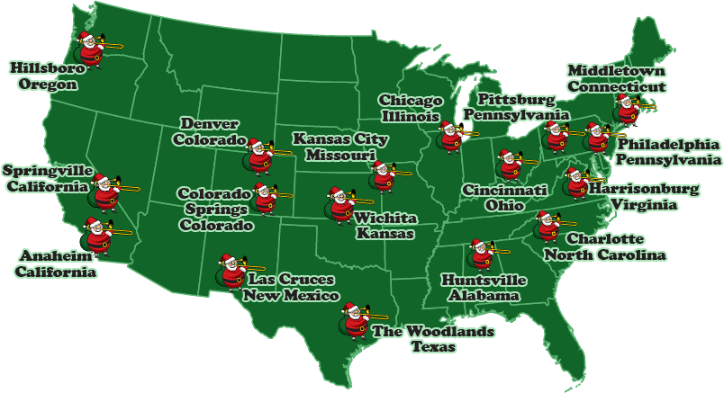 Trombone Christmas performances are being held across the United States this year! Scroll down to click location links.